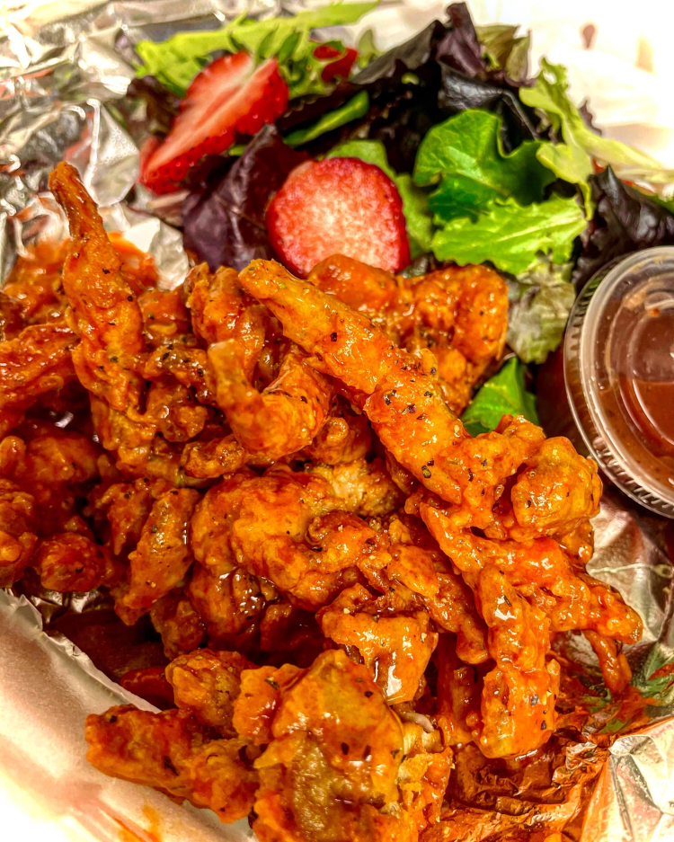 Listed above is MoVegan’s work and Hot Honey Lemon Pepper Mushroom Strips