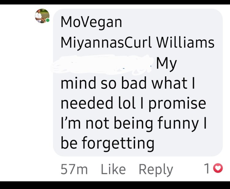 Quite frankly, I only sent a Facebook request to her in late 2021, because I wanted to start becoming one of her patrons. She and I do not run in the same circle, and do not know each other, but she sold a vegan plate that I had the pleasure of eating and it was absolutely delicious, especially her cornbread and mac ‘n cheese!