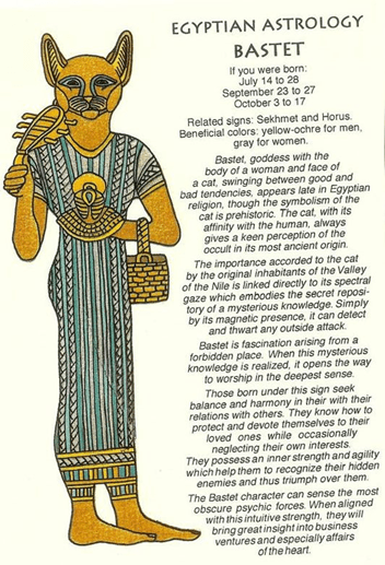 The mystery of Cancers is like the ways of the Feline and Egyptian deity Bastet, a cyclical and mysterious being, affected by moods around them, and extremely impressionable at times, but possess a great sense of humor and are committed to excellence in business.