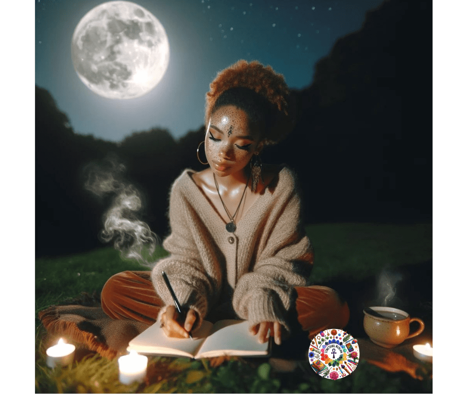 Balance your throat chakra (governed by Mercury) with a soothing tea blend of peppermint, lavender, and lemon, enhancing communication and self-expression. This Moon phase is an opportune time to shine light on the darker aspects of our lives, transforming them with positive affirmations. Create a ritual under the Moon: write down challenges, affirm positive outcomes, and burn these notes as a symbolic release, journaling your journey towards healing and growth.