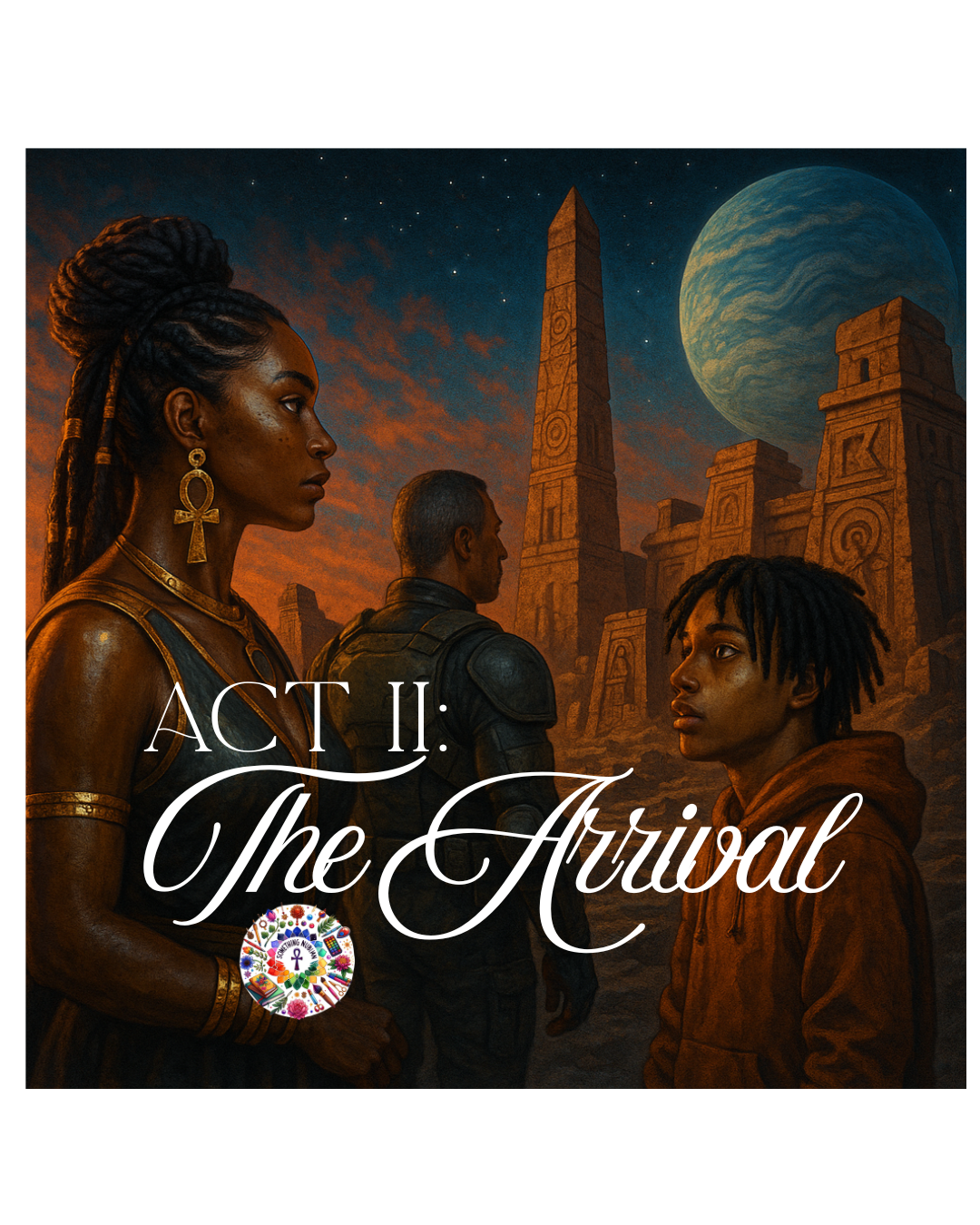In Act I, the world was shaken when a rogue planet entered the solar system. Its surface wasn’t barren rock—it was covered in ruins, ancient and familiar. Dr. Amara N’Kosi recognized symbols tied to Earth’s ancestral knowledge, while young Kael’s dreams revealed a deeper connection: this planet wasn’t just wandering… it was returning.